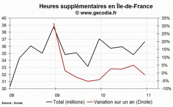 Les heures supplémentaires en baisse dans la région Île-de-France au 4e trimestre 2010