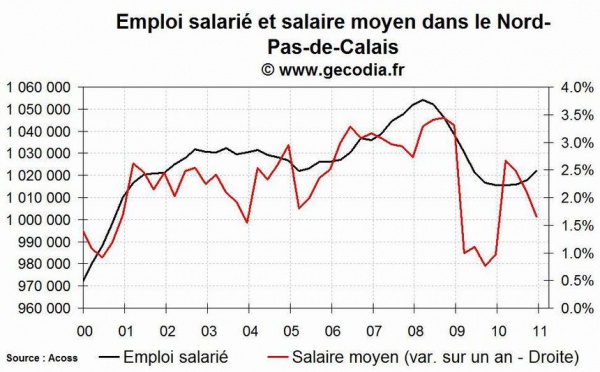 L'emploi salarié dans le privé en hausse en Nord Pas-de-Calais fin 2010